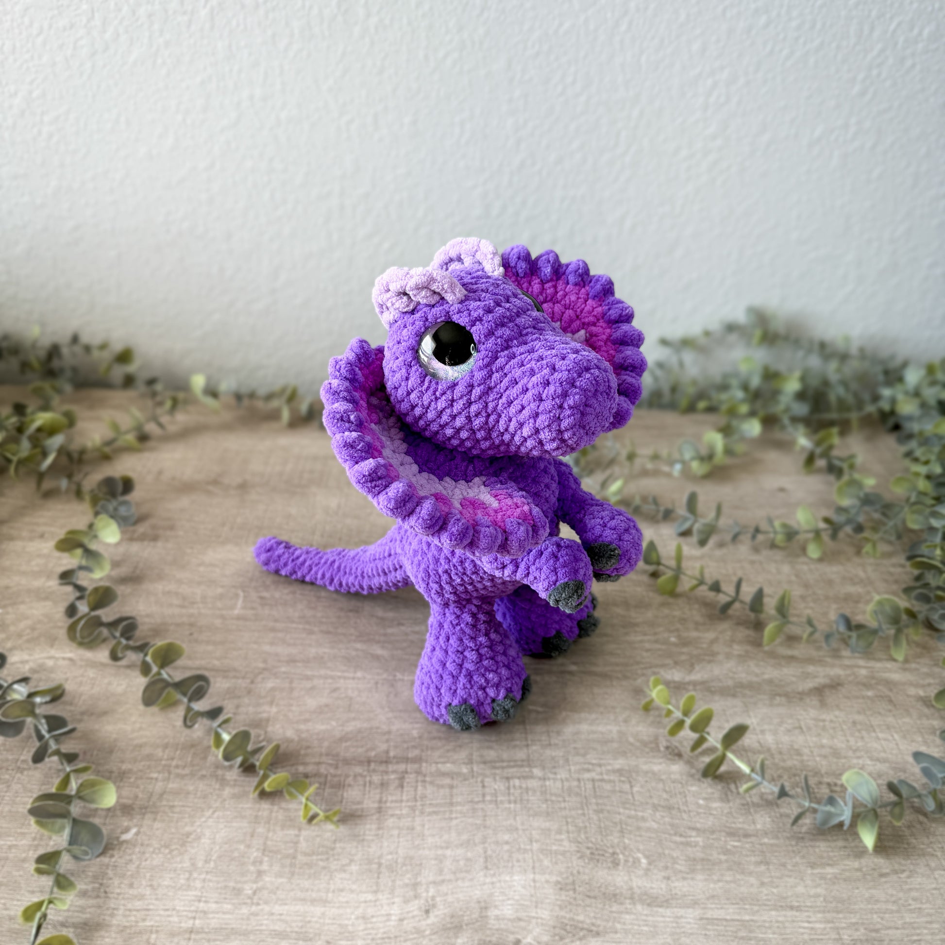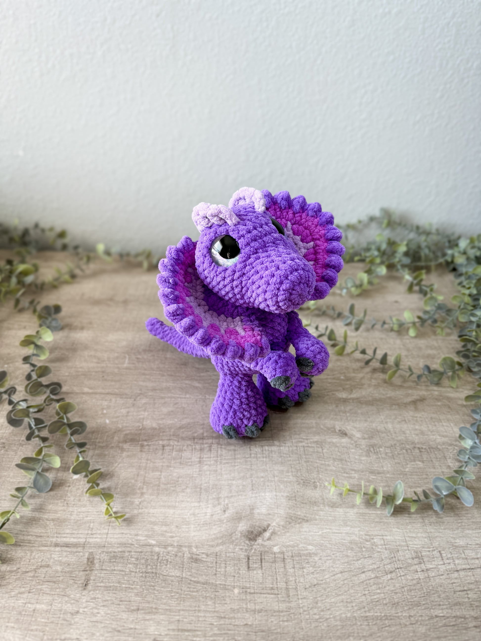 Dylan is made with soft, chenille yarn and stands at about 9.5 inches tall.