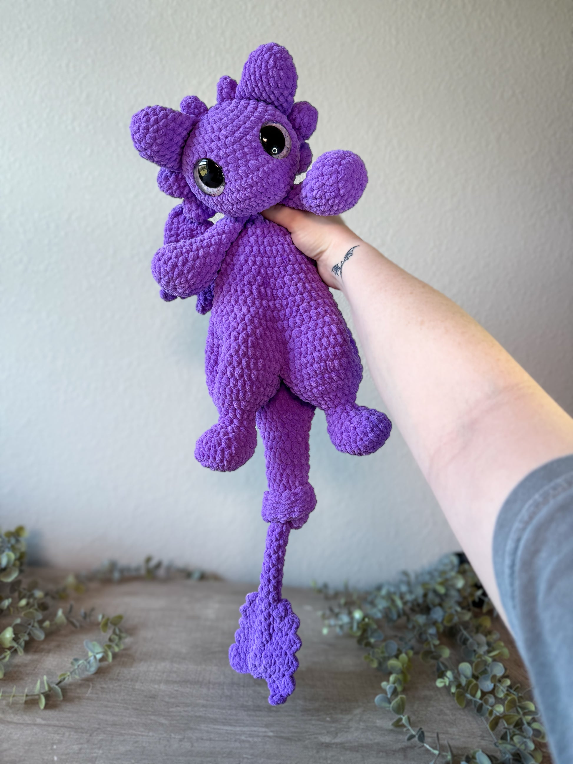 Introducing Supernova the Fury Dragon crochet pattern! This pattern was designed to be a LARGER version of my Nova pattern. The snuggler version is designed to remain unstuffed.